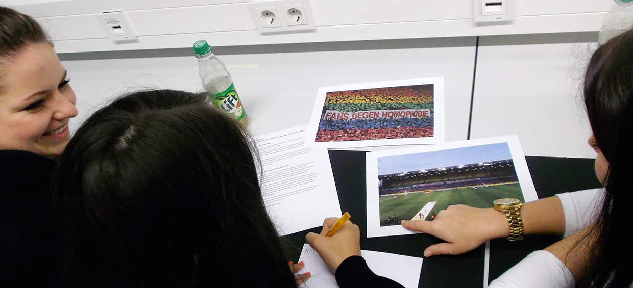 Rassismus, Sexismus und Schwulen- und Lesbenfeindlichkeit im Fanblock? Leider immer noch ein Thema. Um dem zu begegnen hat Show Racism the Red Card - Deutschland e.V. das innovative Workshop-Konzept "Werde aktiv in deinem Block! Junge Fankultur gegen Diskriminierung" entwickelt. Zielsetzung des Projekts ist es junge Fans darin zu bestärken, in ihrem Fanblock für Toleranz einzustehen und sich für eine positive Fankultur einzusetzen. Auf Grundlage der Fußballdokumentation "Wie im falschen Film. Geschichten aus dem Fußball" werden Diskriminierungserfahrungen reflektiert und mit dem eigenen Fan-Sein verknüpft. Dabei bekommen die Teilnehmenden einen Einblick in die aktive Fanszene und Impulse, wie sie sich selbst positionieren und aktiv werden können.